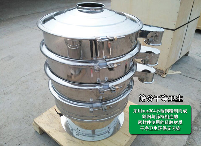 不锈钢振动筛整机采用标准304不锈钢精制而成,内部所有接缝高精抛磨处理,筛网与筛框相连的密封件使用的硅胶材质,干净卫生无污染,并且防锈防腐蚀,完全符合食品卫生标准。