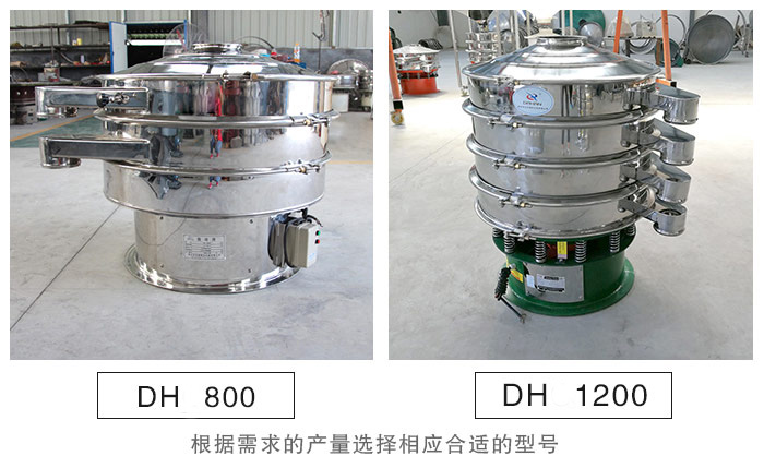 不锈钢振动筛型号有DH600、DH800、DH1000、DH1200、DH1500、DH1800 、DH2000等。满足客户不同的筛分产量需求,客户可根据需求的产量选择相应合适的型号。